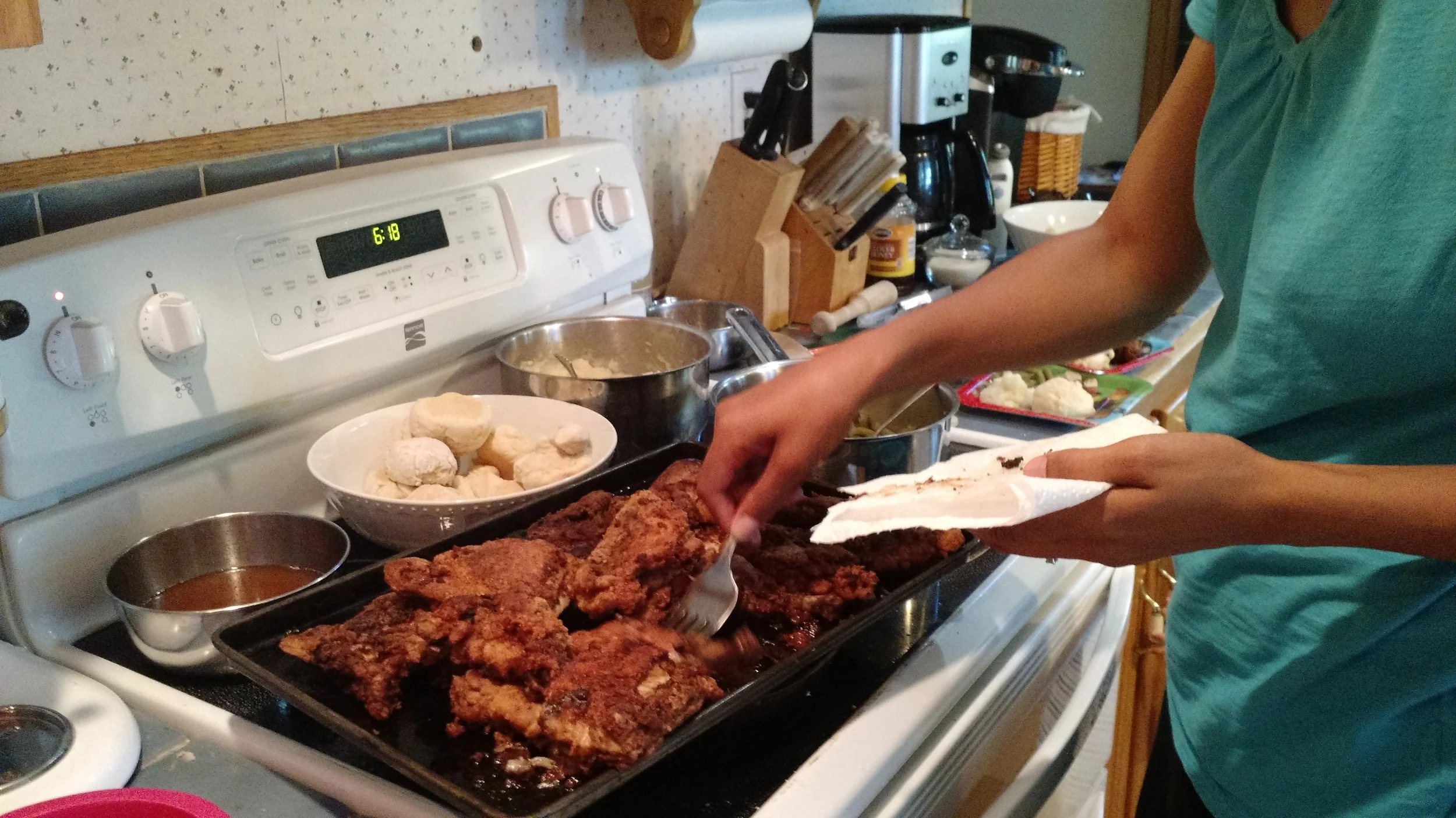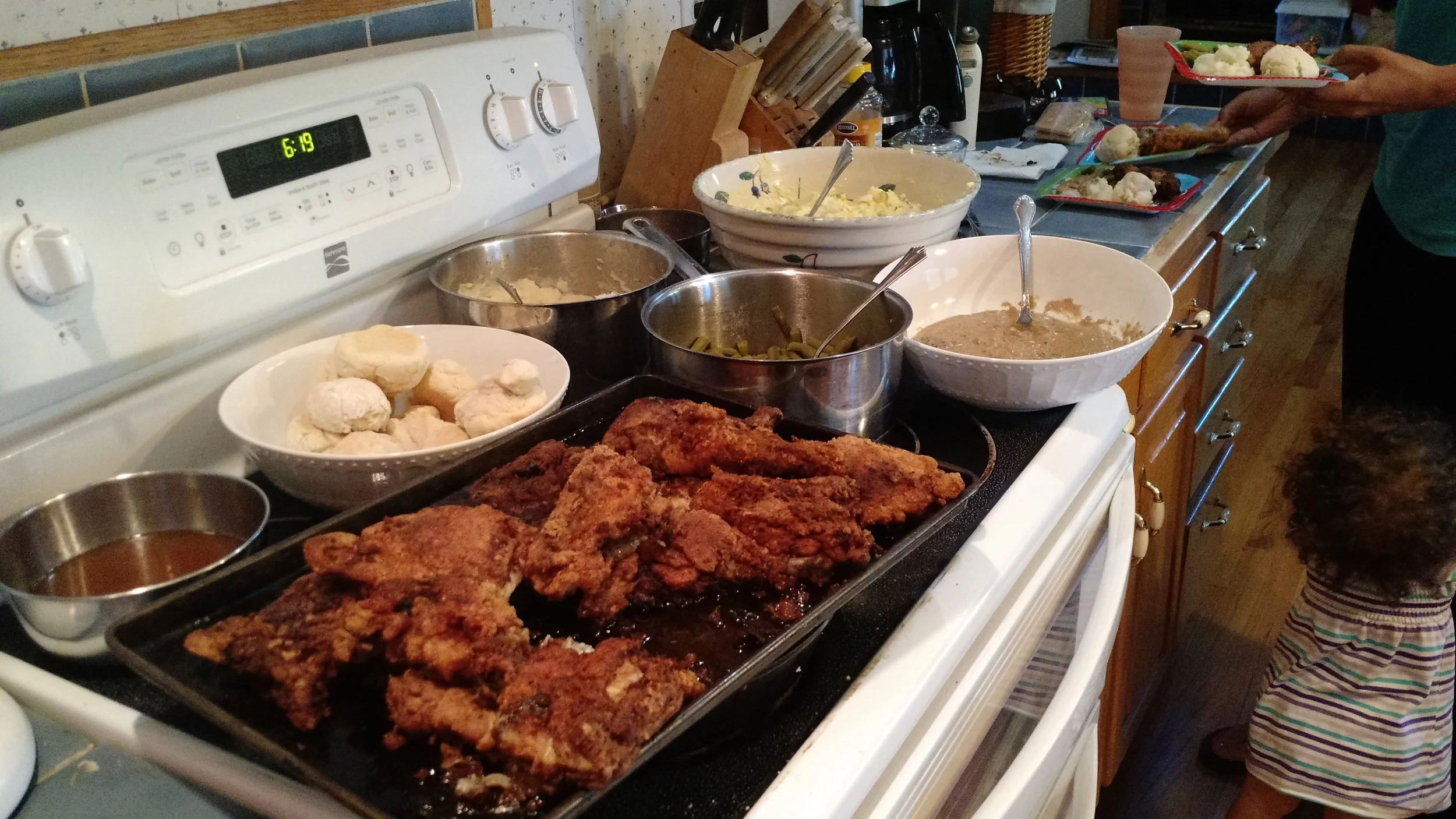 You’ll remember from a few weeks ago that I have a full house right now. It’s a blessing and a challenge. I’m unaccustomed to regularly cooking for a group of eleven. Therefore when Fried Chicken rotated up on my menu list, it was a new cooking opportunity. Something was said about cooking special foods and I thought that fried chicken was just regular country-cooking, albeit maybe Sunday-dinner kind of cooking.